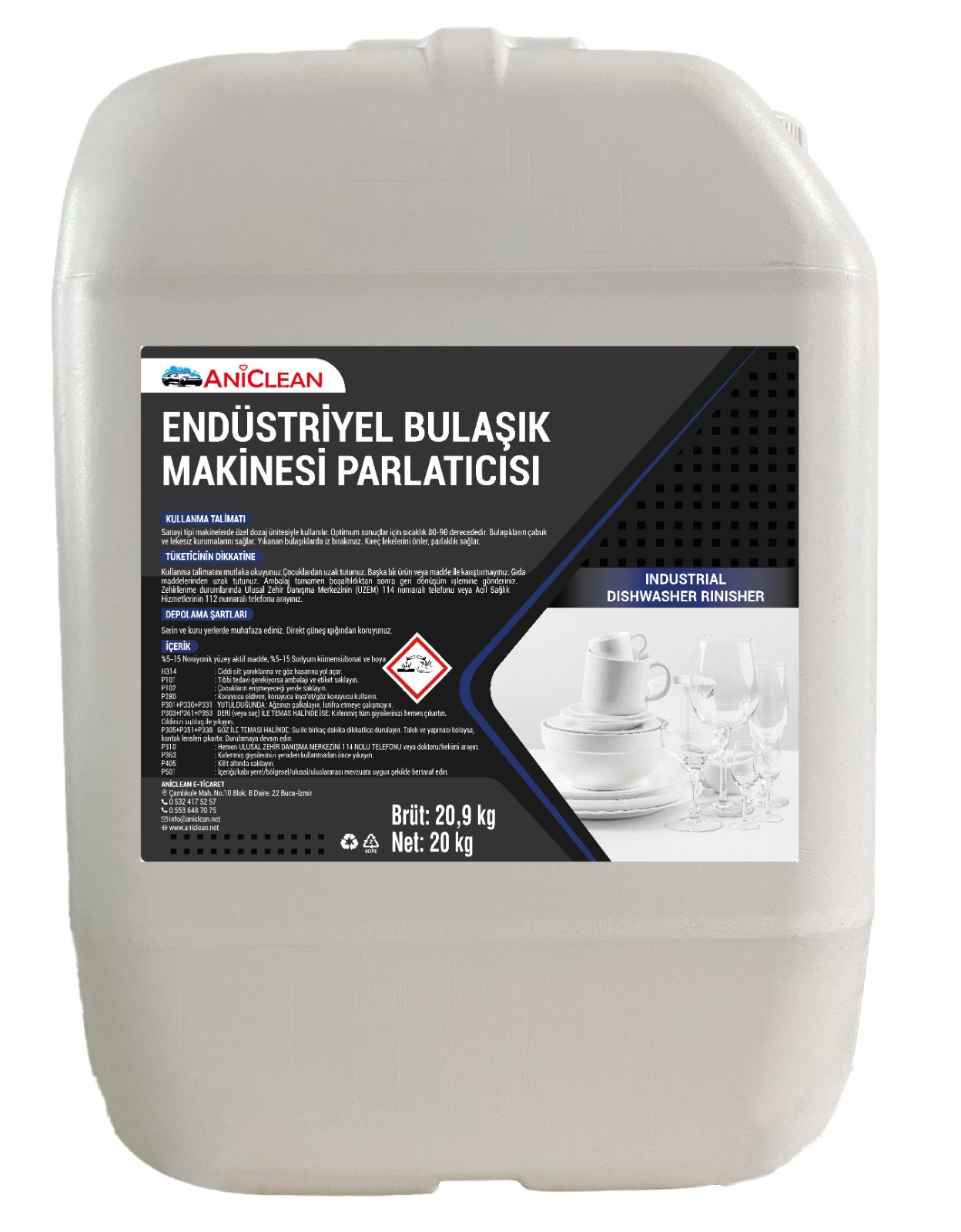 Aniclean Endüstriyel Bulaşık Makinesi Parlatıcısı, profesyonel mutfakların vazgeçilmez çözümü! Özel olarak formüle edilmiş parlatıcımız, endüstriyel bulaşık makinelerinde yüksek performans